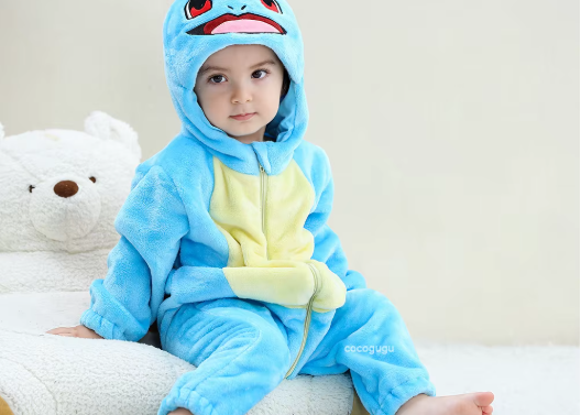 Top Best Squirtle costumes for babies are available as soft, unisex fleece jumpsuits or onesies, featuring the character’s signature light-blue color, turtle shell, and tiny tail.